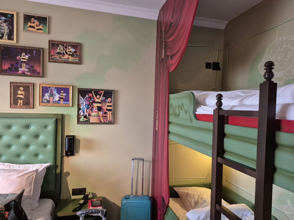 Het Plopsa Hotel zelf was een geweldige aanvulling op ons parkbezoek. Vanaf het moment dat je binnenstapt, voel je dat je in een andere wereld bent. De kamers , zelfs de gewone standaardkamers , hebben een duidelijk Studio 100-thema, wat de kinderen geweldig vonden. Alles is netjes, verzorgd en comfortabel, en ook hier is de thematische afwerking doorgetrokken tot in de kleinste details.
